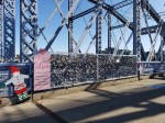 Back to the VRBO digs, night walk in the neighborhood north, fabulous views on the Licking River; dinner was Kroger seasoned chicken breast – 20 minutes in the oven + leftover spuds & veg. Watched the Boys from Brazil on ROKU (the only TV offering), a movie we saw back in the 70’s. Next day we checked out and headed to Newport. I drove to the Purple People Bridge; we walked it to the other side in spite of the wind @ 40° ; I spent a few happy moments reading the inscriptions on the love locks that are fastened to a dedicated area of the bridge .